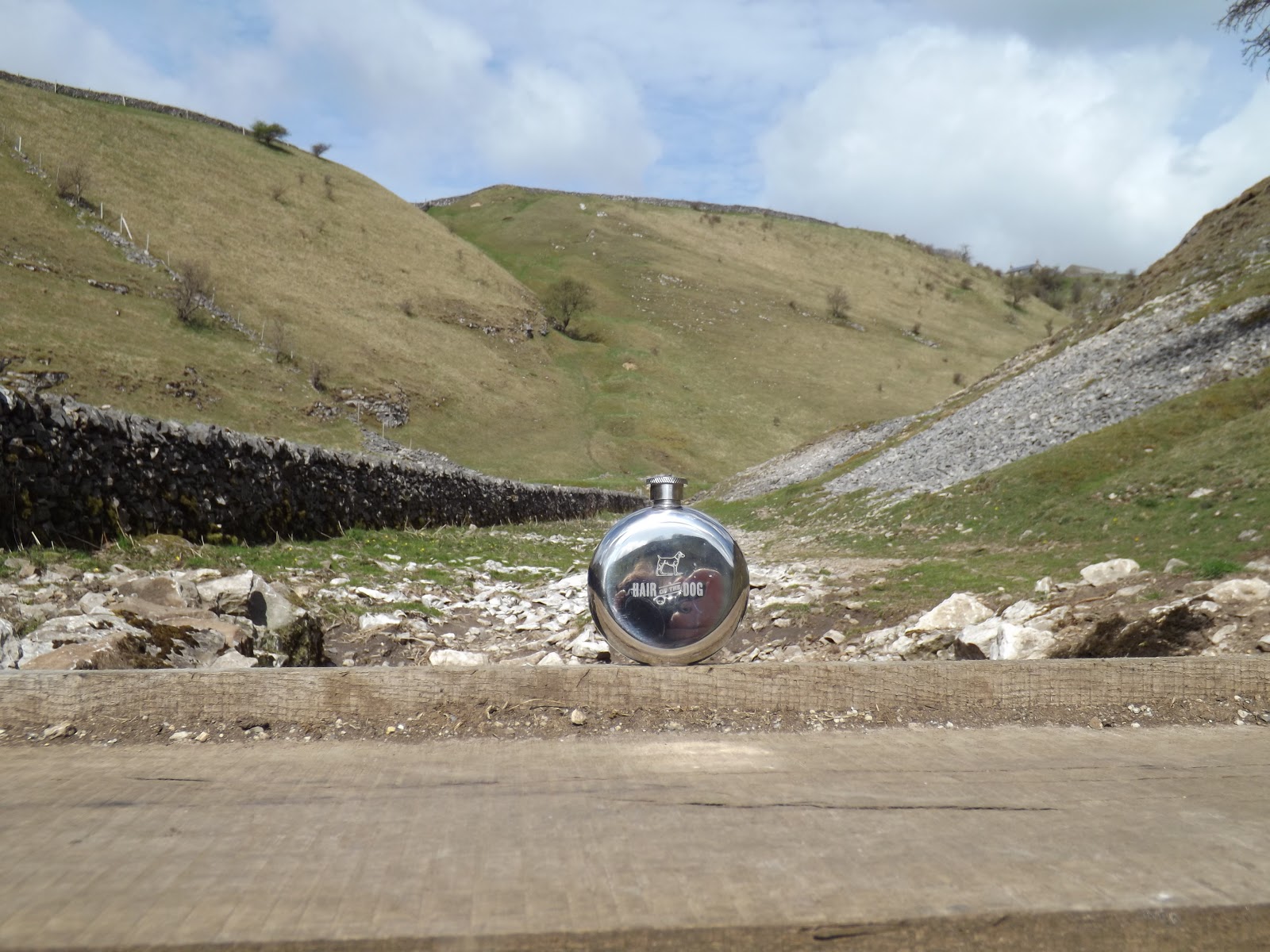 I watch a bird on a stone, possibly a thrush although I am too far away to be certain, with a beak-full of worms for its young then I decide to take out the secret flask. It's too early for a drink, but I need to take the photo for PC!